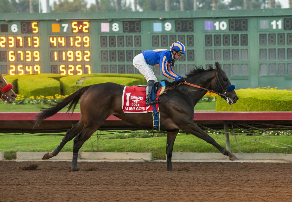 As Time Goes By (4f American Pharoah x Take Charge Lady, by Dehere) added a third graded stakes win to her resume on Sunday with a victory in the Grade III Bayakoa Stakes at Los Alamitos.