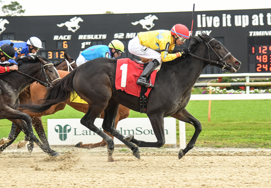 Racing over 1 1/16 miles on the Tampa Bay Downs dirt, the filly was happy to track the leaders for much of the race with jockey Daniel Centeno tucking her up near the rail. The filly stayed on the inner paths until piloted to the outside for the stretch run.