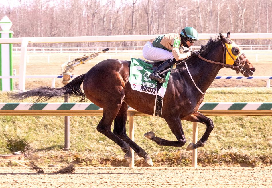 Trained by Bruce Kravets, Nimitz Class put on a master show in the one mile dirt race with a 6 ¼ length romp as the heavy favorite.