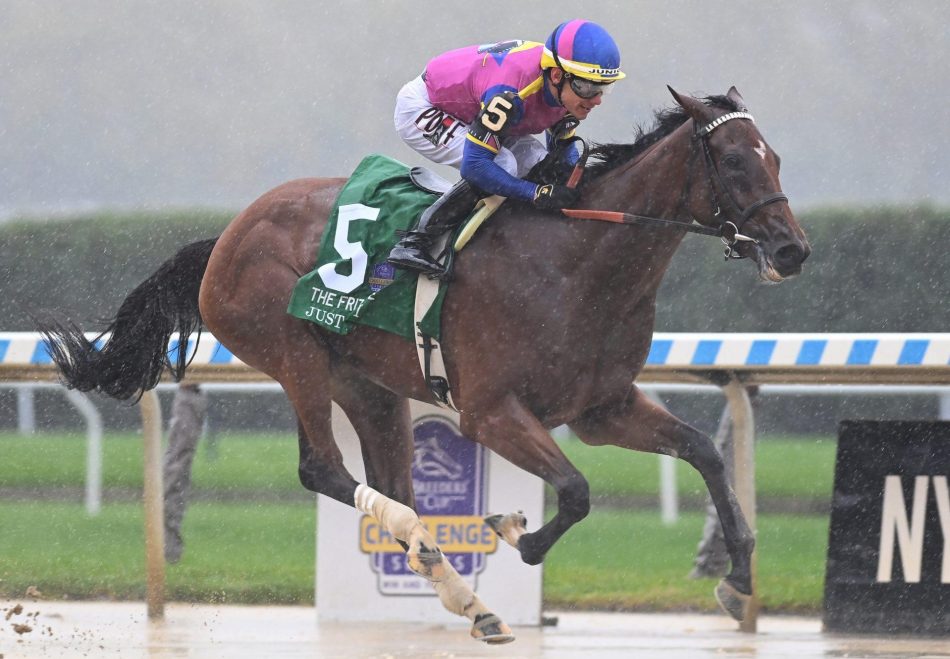 Trained by Bill Mott for owner / breeder George Krikorian, Just FYI won on debut at Saratoga back in August and took a big step forward when making light of the wet conditions to power clear and win by more than four lengths earning a start in the Breeders Cup at Santa Anita next month.