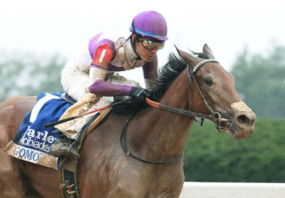 Raced by the same connections as Uncle Mo’s Grade I winning colt Nyquist, Gomo settled in the field and powered to the line to win the 1 and 1/16th mile feature by a commanding two and three-quarter lengths making light of the sloppy ground.