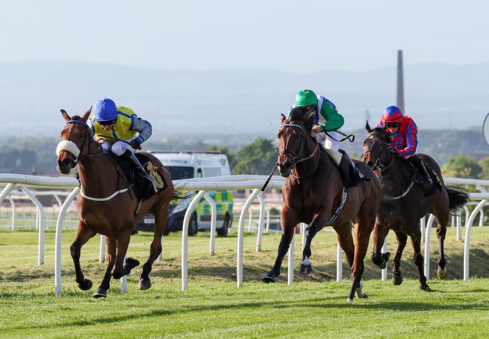 The Donald McCain-trained bay finished a promising third on debut in March and was one of two fillies to take on the colts on Friday. Chasing the leaders under Graham Lee, she was pushed along approaching the two furlong marker and led a furlong later. Ridden inside the final furlong, she kept on well to deny the favourite by three parts of a length, with the pair drawing four and a half lengths clear of the third.